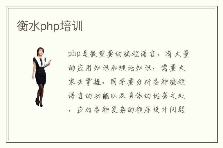 php是很重要的编程语言,有大量的应用知识和理论知识,需要大家去掌握,同学要分析各种编程语言的功能以及具体的优劣之处,应对各种复杂的程序设计问题,也可以找到合适的编程语言。衡水php培训php培训学校的作用显著,可以安排大量的php基础课程。更重要的是,培训之前会分析同学的能力及感兴趣的科目,然后再安排一些相关的php课程,充分发挥php培训的帮助。php课程项目相当丰富,比如同学需要掌握编程语法、运算符以及基础的课程项目。另外,php编程和其他学科的联系特别大,比如这些编程可以运用到程序设计、系统维护、云计算应用等等项目当中,所以大家也要着重了解这些课程的作用和应用的方法。而且要综合去学习,开阔自己的视野,综合理解专业的技能。
