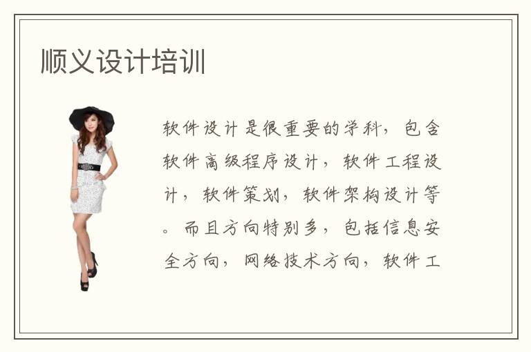 软件设计是很重要的学科,包含软件高级程序设计,软件工程设计,软件策划,软件架构设计等。而且方向特别多,包括信息安全方向,网络技术方向,软件工作方向。要是同学想快点学习软件设计的知识,可以找到顺义设计培训相关机构,从而发挥更多技术优势。设计专业工作容易吗,设计专业工作比较容易,竞争难度并不是很大,毕竟社会上有大量的科技公司招聘软件设计专员。要是同学跟上时代的进步,努力学习前沿的知识,效果会更好。当然如果个人成绩始终上不去,可以考虑教学质量很高的辅导班。因为辅导班优势突出,思路很清晰,设计培训的目标十分明确。另外在辅导班的帮助下,同学可积累很多实践应用的知识,也能学习其他交叉学科,包括软件工程开发、云计算、人工智能等。