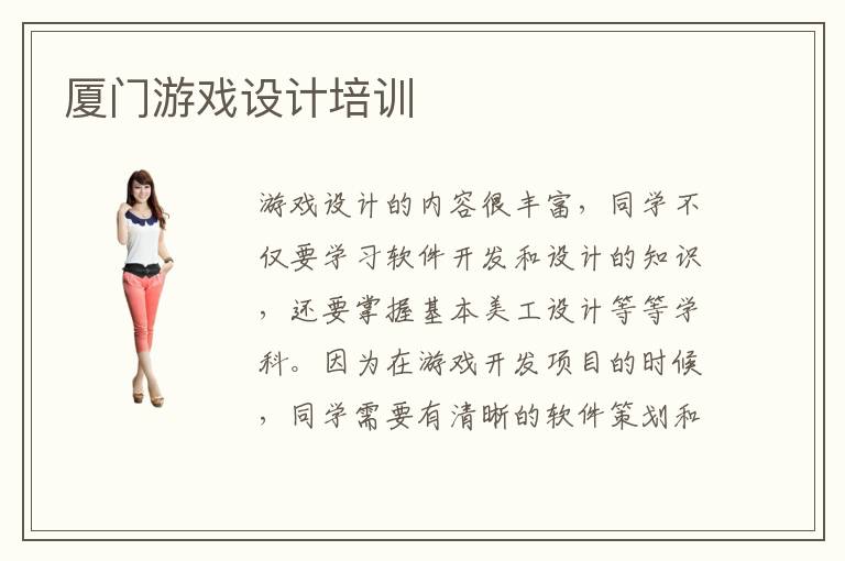 游戏设计的内容很丰富,同学不仅要学习软件开发和设计的知识,还要掌握基本美工设计等等学科。因为在游戏开发项目的时候,同学需要有清晰的软件策划和软件功能分析、需求分析,然后再进行游戏的场景制作、背景制作以及人物、音效制作等等。厦门游戏设计培训设计培训学校会详细介绍每一个步骤,分析游戏设计需要用到的技术,使大家的技术能力更强,弥补个人的知识漏洞。另外学校会为大家介绍游戏设计就业前景,使大家更关注行业的动态,然后针对行业的发展情况和现状,调整学习的方向,把握住时代发展机遇。游戏设计培训如何收费,游戏设计辅导班收费并不固定,有些游戏设计学校的收费标准高,主要原因是教学口碑非常好,任务非常紧凑,同学的进步空间大,自然会有很高的收费。