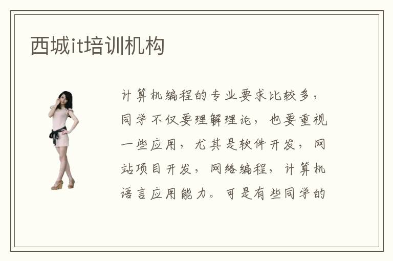 计算机编程的专业要求比较多,同学不仅要理解理论,也要重视一些应用,尤其是软件开发,网站项目开发,网络编程,计算机语言应用能力。可是有些同学的学习水平非常有限,进度也比较慢,成果很不理想,无形之中产生许多压力。西城it培训机构可帮助同学调整学习进度,改善同学的学习水平和理解能力,加快学习的步伐,从而获得更多专业进步的成果。而这些辅导机构的口碑越来越好,同学的满意度逐渐上升,也吸引着大量的技术专员报名。it行业热门吗,it行业当然很热门,首先是这些行业的工资待遇比较高,很多同学在刚起步阶段,就能获得1万到14000元的月薪收入。另外it行业的前途非常广阔,有大量的工作机会,同学可参加软件开发工程师,网络编程工程师,云计算专员等等工作。