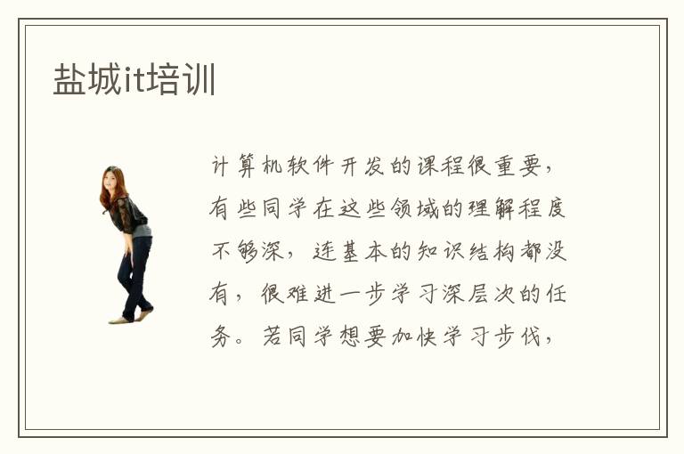 计算机软件开发的课程很重要,有些同学在这些领域的理解程度不够深,连基本的知识结构都没有,很难进一步学习深层次的任务。若同学想要加快学习步伐,理解更多专业内容,可以考虑盐城it培训学校,老师不仅安排许多it基础性的课程,也会针对同学的能力,制定不同的复习方案,巩固同学的基础,促使大家的学习水平变得更高。如何学习it课程,同学可以从实践出发,了解实践过程要掌握的技能,包括数据库管理,计算机网络应用,操作系统应用,计算机体系结构等等,然后结合it基础教学进行深度的优化。另外,实践的过程中,可能会存在一些比较陌生的步骤,学生应该针对这些内容,不断进行巩固,经过几个月严格的计算机专业课程训练后,效果会越来越明显。