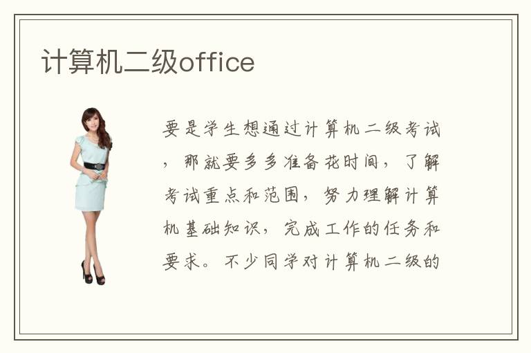 要是学生想通过计算机二级考试,那就要多多准备花时间,了解考试重点和范围,努力理解计算机基础知识,完成工作的任务和要求。不少同学对计算机二级的基础掌握不够深入,没有找到学习方法,或者学习不够充分,花了很长时间去学习,也难以看到成果。这时可以报名计算机二级office辅导班,完成老师布置的课程,提升办公软件的应用能力,从而凸显出计算机二级office考试的水平。计算机二级哪个好,其实每一个课程都有不一样的作用,有些同学工作方面需要大量的计算机编程学,可以学C语言或者是python编程。但如果是在工作中需要用到大量的办公软件,可以报名计算机MS office考试。只要认真学习考试的知识,往往就能熟练掌握基础的办公软件应用方法,提高工作的效率。