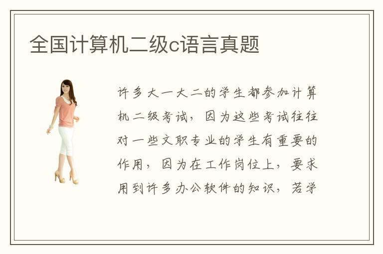 许多大一大二的学生都参加计算机二级考试,因为这些考试往往对一些文职专业的学生有重要的作用,因为在工作岗位上,要求用到许多办公软件的知识,若学生掌握这些知识,对个人工作和考试都拥有非常大的指导价值。在复习阶段,可以着重关注全国计算机二级计算机二级c语言二级c语言真题,因为整体的题目往往反映出考试的重点,可以给予学生非常好的方向。如果同学没有复习的方向,可参加考试的补习班,了解重点的课程。计算机二级c语言哪些辅导班好,其实每一个培训班的技术含量、教育能力和培训目标都不太一样,学生要谨慎对比,了解培训学校的综合水平、教学能力,不能一概而论。全国计算机二级c语言容易吗,这些语言考试的难度不大,大多数学生经过备考后都能够通过。