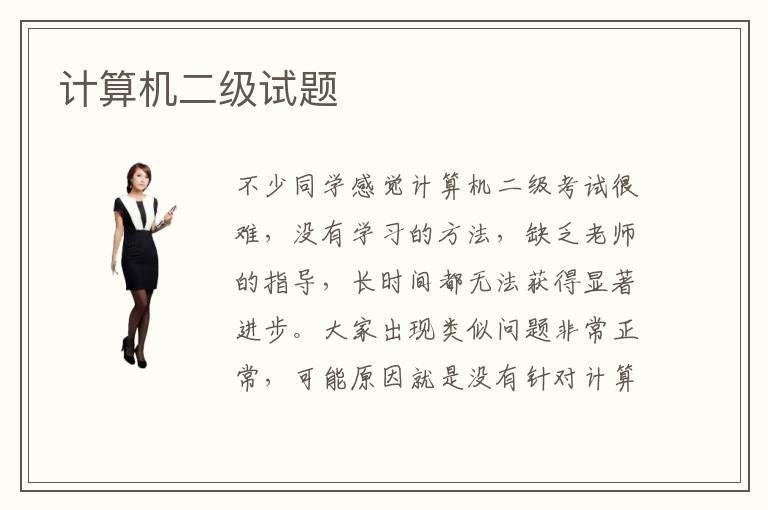 不少同学感觉计算机二级考试很难,没有学习的方法,缺乏老师的指导,长时间都无法获得显著进步。大家出现类似问题非常正常,可能原因就是没有针对计算机二级试题进行复习,导致复习的方向模糊,进步速度也很慢。有些的学生对计算机专业知识理解不多,自学的能力比较差,所以会参加计算机二级教程,老师有更加详细的科学的教学课程,也会通过清晰的学习目标和计划,帮助学生掌握计算机考试的难点,在考试中取得更高分数,争取一次通过。计算机二级的用处大吗,计算机二级的用处还是比较明显的,比如不少同学在应聘的时候没有很强的技术水平,要是有一本计算机二级考试证书,说明自己在计算机方面有比较强的实力,有助于显示出自身的专业能力,得到公司的信任。