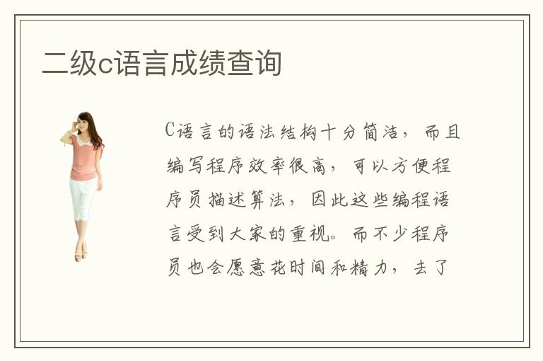 C语言的语法结构十分简洁,而且编写程序效率很高,可以方便程序员描述算法,因此这些编程语言受到大家的重视。而不少程序员也会愿意花时间和精力,去了解掌握C语言的语法知识、使用范围以及基本的规范、应用范畴等等知识。但学习过程中,要了解自身的水平,找到学习的方向,从而获得更多进步。如果不太了解自己的学习水平,可以报名一个计算机二级考试,进行专业的检测。二级c语言成绩查询一般可以通过手机或者电脑查询,找到相关的考试网站,然后填写报名考试后以及身份证号,便可查询到自己的成绩。二级c语言精讲班的费用可能是2000~3000,但具体要看大家报名的学校类型以及老师的水平、二级c语言课程等。要是学校比较专业,老师水平更高,那收费自然会更贵。