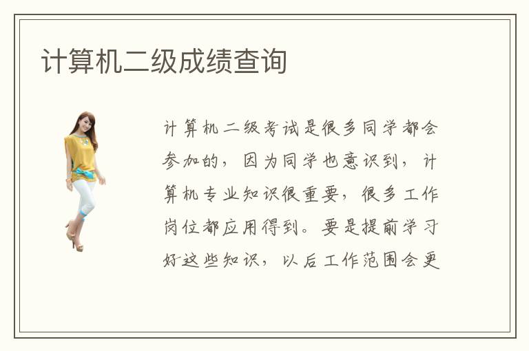 计算机二级考试是很多同学都会参加的,因为同学也意识到,计算机专业知识很重要,很多工作岗位都应用得到。要是提前学习好这些知识,以后工作范围会更广,工作能力更强,更可以得到公司的认可和信赖。计算机二级成绩查询可以通过网上查询以及信息查询等多种方式进行,在考试完之后,在两个月到三个月内就可以得到成绩。计算机二级大概准备多久,其实大家的复习时间都不太一样,有些同学准备一两个月就能够深入了解计算机考试的核心,也能分析清楚难点和重点,备考更加充分。自学计算机二级怎么样,自学计算机二级考试也是可以的,但是要花比较长的时间准备,而且要反复思考和总结。有些同学的自学能力不算强,速度会比较慢,大家要花更长时间,不要总是漫不经心。