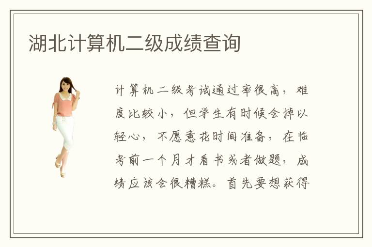 计算机二级考试通过率很高,难度比较小,但学生有时候会掉以轻心,不愿意花时间准备,在临考前一个月才看书或者做题,成绩应该会很糟糕。首先要想获得高分,应该多花时间准备,关注计算机二级考试的范围和重点,学习重要的技术,加快学习的步伐,减少学习的负担。其实为了得到比较好的成果,学生应该多做准备,关注重要知识,选择合适的学习方式,将理论和应用充分联系起来,真正发挥出专业实力,这样在湖北计算机二级成绩查询的时候才会有更满意的分数。如何提高计算机二级考试分数,每个人的学习能力都不同,进步速度也会有变化。大家要了解基本的问题,挖掘了自己的不足,深入总结和训练,或者结合计算机二级在线辅导,找到复习方向,提高学习速度。