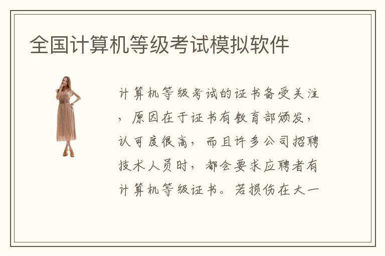 计算机等级考试的证书备受关注,原因在于证书有教育部颁发,认可度很高,而且许多公司招聘技术人员时,都会要求应聘者有计算机等级证书。若损伤在大一大二的时候,有充足的时间,不妨报名计算机等级考试完成考试的要求,从而优化个人计算机应用能力,考取更高的分数。同学如果想快速掌握计算机等级考试的内容,可以看看全国计算机等级考试模拟软件,结合模拟训练和真题训练进行强化,从而取得更多考试优势。全国计算机等级考试有哪些用,首先是考察自己的计算机专业能力,有些同学的计算机专业水平很有限,能力不是很强,难免会存在很多学习的问题。但通过全面的备考,有利于让同学挖掘不足之处。计算机等级考试容易不,二级级考试的难度不高,但三级或四级考试难度会高一点。