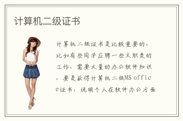 计算机二级证书是比较重要的,比如有些同学应聘一些文职类的工作,需要大量的办公软件知识,要是获得计算机二级MS office证书,说明个人在软件办公方面有比较强的水平,这样也更容易得到公司的青睐。不过同学在备考过程中,要认真分析考试难题和重点,针对考试考查范围和方向,做好复习工作,从而取得好成绩。计算机二级难吗,计算机二级考试的复习难度不算高,许多同学经过紧张的备考训练之后,都能将真题的应用要求掌握起来,夯实自己的技术,提升工作的水平。备考时为了得到比较好的成绩,学生还要结合计算机二级考试模拟题,进行严格的训练,通过不断真题和模拟题的训练,可以提升知识的运用能力,在遇到各种复杂题目的情况下,也可以更加准确作出判断。