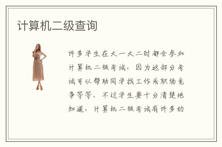 许多学生在大一大二时都会参加计算机二级考试,因为这部分考试可以帮助同学找工作或职场竞争等等。不过学生要十分清楚地知道,计算机二级考试有许多的重点内容,而且部分内容十分专业,学生如果没有充分准备,或者理解不深刻,都会影响考试分数。计算机二级查询时间是11月份和5月份中下旬,因为每一年都会有好几次计算机二级考试,所以学生可以参考往年各个考试的报名时间和考试时间成绩查询时间。如果成绩不理想,可以多花时间学习,再准备考一次。这时也可以参与计算机二级一对一培训,得到老师全方位指导,快速提高成绩。计算机二级哪些作用大,如果平常需要用到很多办公软件,那么可以报名MS office高级应用。如果需要用到程序设计,可报名c语言程序设计。