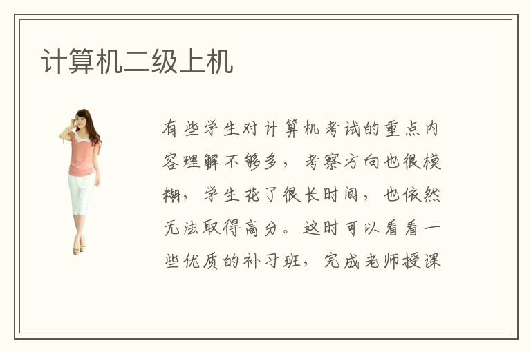 有些学生对计算机考试的重点内容理解不够多,考察方向也很模糊,学生花了很长时间,也依然无法取得高分。这时可以看看一些优质的补习班,完成老师授课的方案,减少学习当中的难题。计算机二级上机,计算机二级重要不,计算机二级考试当然有重要价值,首先是帮助同学查漏补缺,同学经过紧张的备考后,将各种重要的知识内容进行深入的分析,快速取得良好的成绩。另外同学要是有疑问,可以继续请教专业老师,弥补计算机方面的知识漏洞,在工作中取得更多优势。计算机二级哪些科目容易,每个人的擅长之处以及感兴趣的领域都不同,报名的科目也不一样。有些学生比较喜欢学习办公软件的知识,或者工作中比较常用到这些技术,所以会选择MS office二级考试。