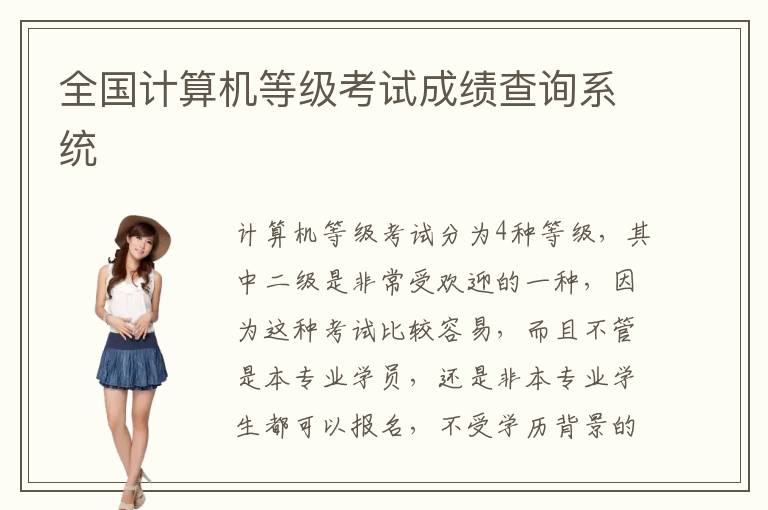 计算机等级考试分为4种等级,其中二级是非常受欢迎的一种,因为这种考试比较容易,而且不管是本专业学员,还是非本专业学生都可以报名,不受学历背景的限制。若同学可以多花时间准备,考试成绩会比较理想,获得计算机二级证书,从而在应聘时达到公司指定的硬性标准。在考完试之后的两个月左右,学生便可以搜索全国计算机等级考试成绩查询系统,找到自己的分数。计算机等级考试有什么作用,主要是优化个人技术水平,得到更好的进步。另外计算机等级考试可以为大家展示重要的知识,凸显出学习的价值。全国计算机等级考试容易吗,计算机等级考试难度有点低,比如三级考试和四级考试,属于专业性的级别,考试难度会比其他一级考试和二级考试更高一点。