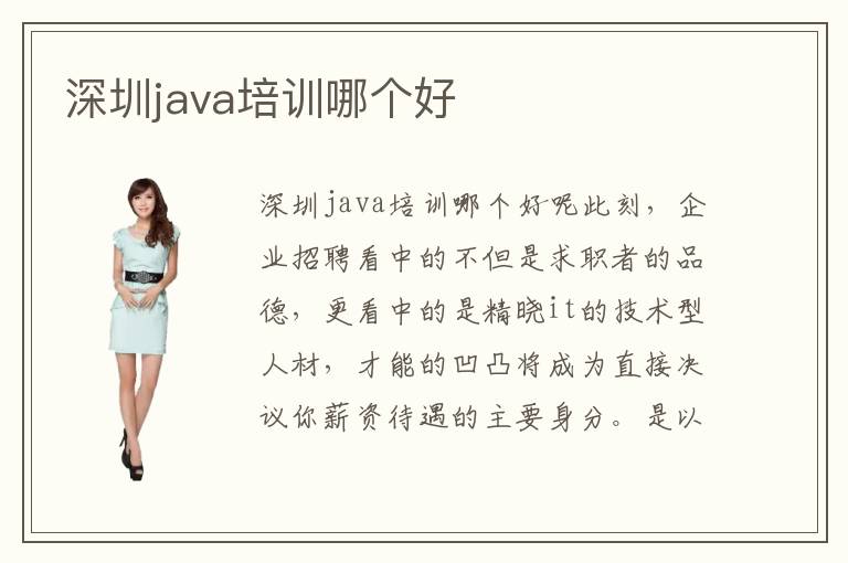 深圳java培训java培训哪个好呢此刻,企业招聘看中的不但是求职者的品德,更看中的是精晓it的技术型人材,才能的凹凸将成为直接决议你薪资待遇的主要身分。是以不竭挑升本身的专业妙技,做到与时俱进的尽力学习新时代所需把握的常识是很主要的。但是最好的学习技术的路子,便是选择靠谱专业的培训机构来学习,这就需要人人擦明双眼,细心将各大培训机构停止对比。深圳java培训哪个好推荐电脑学校