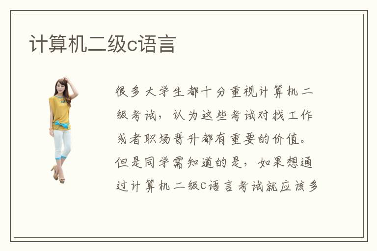 很多大学生都十分重视计算机二级考试,认为这些考试对找工作或者职场晋升都有重要的价值。但是同学需知道的是,如果想通过计算机二级c语言考试就应该多投入时间与精力,不要认为考试的内容很简单就忽略了准备的重要性。不少同学早就已经意识到自己计算机编程语言方面的不足之处,也愿意投入精力,但是目标不够严谨,思路不够清晰,成绩也很不好。为了取得更加满意的分数,同学可以报水平比较高的计算机辅导机构,老师会详细介绍计算机二级c二级c语言精讲课程,为同学分析考点内容和计算机考试重要的知识,使同学的成绩有更好的表现。计算机二级c语言作用主要是帮助大家查找知识漏洞,利用c语言设计各种编程和程序,提高自己的工作效率,优化学习的质量。