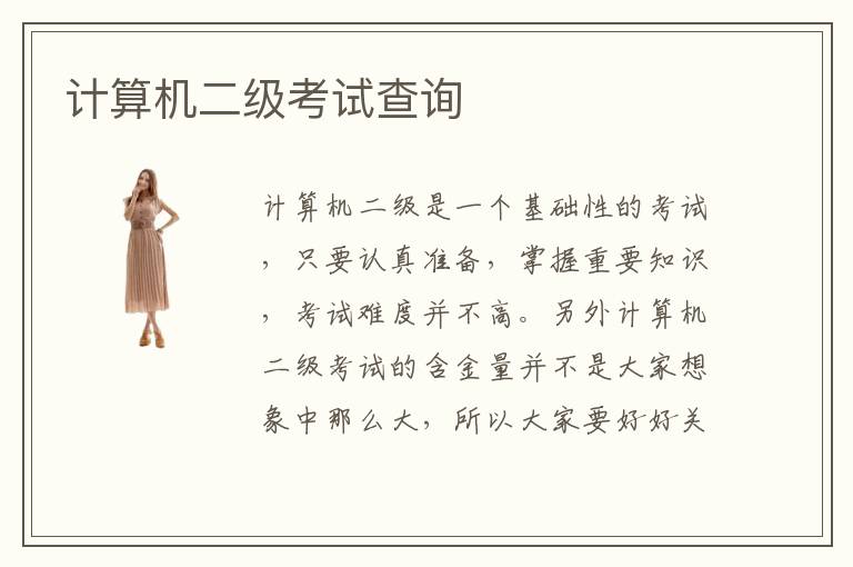 计算机二级是一个基础性的考试,只要认真准备,掌握重要知识,考试难度并不高。另外计算机二级考试的含金量并不是大家想象中那么大,所以大家要好好关注这些考试的价值,针对自己未来的需要,去选择合适备考方向。计算机二级考试查询一般是在5月份和11月份,3月份的考试是5月份出成绩,可以通过信息查询以及电脑查询的方式查询出来。考试成绩公布之后,同学便可搜索教育考试网站,然后再填写相关信息,把自己的成绩查出来。计算机二级要怎么备考,应该认真做好复习工作,了解行业的动态和趋势。计算机二级考试报考时间下半年是12月份,其实每一个省份的报名时间都不同,可以在学校教务处或者省级的计算机等级考试院查询,应该可以找到相关的信息。