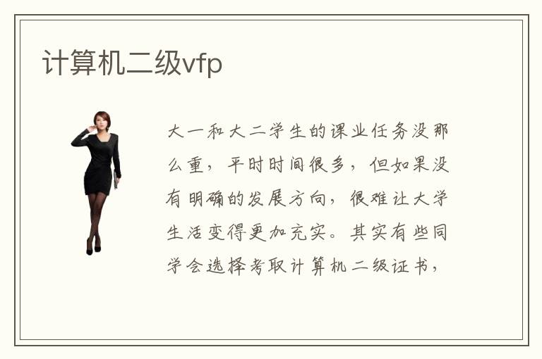 大一和大二学生的课业任务没那么重,平时时间很多,但如果没有明确的发展方向,很难让大学生活变得更加充实。其实有些同学会选择考取计算机二级证书,毕竟这些证书不需要学历背景,不管是本专业的学生,还是非本专业学生,都能够报名参加。不少学生认为计算机二级vfp非常有用,所以想要报名这些科目,这时不妨看看不同科目的作用以及应用的要求、学习的价值等等。计算机二级有哪些用处,计算机二级的主要作用就是帮助大家巩固知识,找到计算机方面的不足领域,然后进行系统的训练,提高考试成绩。计算机二级什么时候报名,每一年的报名时间都存在一些变动,学生可以搜索报名考试网站,或者是参考往年的考试时间,但具体还是要根据当年的实际情况来判断。