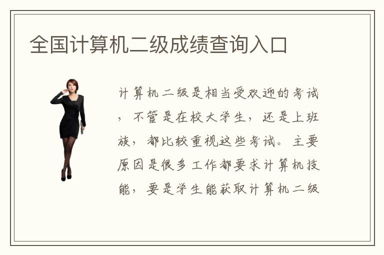 计算机二级是相当受欢迎的考试,不管是在校大学生,还是上班族,都比较重视这些考试。主要原因是很多工作都要求计算机技能,要是学生能获取计算机二级证书,说明办公软件实力比较强,也能完成编程设计和程序设计的工作,以后应聘时会有更多优势。同学在考完二级考试后的两个月到三个月,便可以及时关注成绩公布的时间,然后再找到全国计算机二级计算机二级成绩查询入口,查询自己的考试结果。有些同学成绩比较差,可能需要重新再复习一遍,然后准备下一次的全国计算机二级考试。计算机二级考试时间是每年的3月,6月,9月和12月。其实每个省份的报名时间和次数都不同,所以学生在准备报名之前,可以搜索一下具体的考试时间,然后再考试之前,做好详细的规划,提高考试成绩。