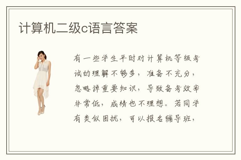有一些学生平时对计算机等级考试的理解不够多,准备不充分,忽略掉重要知识,导致备考效率非常低,成绩也不理想。若同学有类似困扰,可以报名辅导班,完成备考的要求,从而取得更好成绩。在复习的时候,同学们要多多练习真题,关注历年真题的考试重点和知识、考试范畴等等,然后结合计算机二级c语言答案,进行深入的系统的复习。二级c语言考试时间一般是3月,6月,9月和12月,其实每年的时间都不太一样,而且每个省份的考试时间也有变化,所以学生要根据当地的情况来判断。计算机二级c语言用处主要在于帮助大家整理知识结构,掌握程序设计、程序改错以及程序填空等等,以后应对各种c语言程序设计的问题,也可以得到更多进步,从而取得更多工作优势。