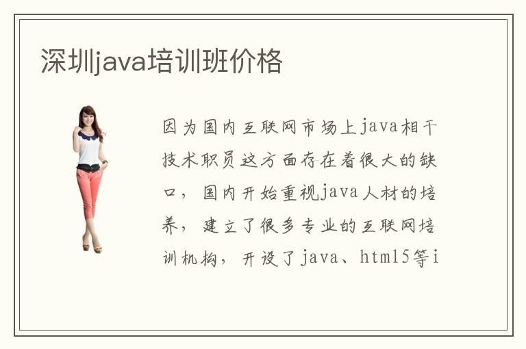 因为国内互联网市场上java相干技术职员这方面存在着很大的缺口,国内开始重视java人材的培养,建立了很多专业的互联网培训机构,开设了java、html5等it课程。那末,深圳java培训班java培训班价格贵吗一般的java培训机构会为学生开设四个月摆布的培训课程,针对学生的基础成绩,一对一耐烦讲授。固然,分歧的培训机构收费标准也是纷歧样的,可是凡是的培训机构需要的培训学费大概是在一万五摆布。深圳java培训java培训班价格推荐电脑学校