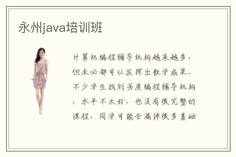计算机编程辅导机构越来越多,但未必都可以发挥出教学成果。不少学生找到劣质编程辅导机构,水平不太好,也没有很完整的课程,同学可能会漏掉很多基础和重点知识,反而会影响大家的学习进度。永州java培训班一般都会认真为同学负责,关心同学的学习阶段和掌握效果,结合丰富多样的教材和案例,设计不同的课程。同学还可以选择周末或者晚上的时间,又或者是采用互联网学习的方式,时间很自由,不用受到限制。java是什么,这是重要的编程语言,有很多种作用,如果同学需要软件设计或者网络爬虫,界面设计等等,都可以选择这些重要的编程语言,实现具体的功能。java培训班的入门课程特别重要,尤其是零基础学员,没有学习方向,可以从入门课程开始。