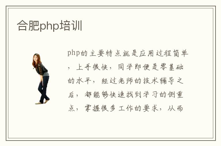 php的主要特点就是应用过程简单,上手很快,同学即便是零基础的水平,经过老师的技术辅导之后,都能够快速找到学习的侧重点,掌握很多工作的要求,从而获得提升的机会。合肥php培训php培训学校可提供很多教学的思路,安排专业的辅导方案,补充知识方面的不足。只要同学感觉负担很重,学习进度不快,都可以报名这样的补习班。php如何应用,这些编程可以应用于很多项目当中,包括爬虫开发,网页设计,电商系统开发等等。php培训课程多吗,php课程很多,多数都是一些应用类的技术。因为辅导班非常重视同学的业务能力,强调理论与实践结合,为同学量身定制不同的规划,真正达到个性化的教学效果。因此同时要认真珍惜,了解php辅导班的教学方案,学习重要领域的课程。