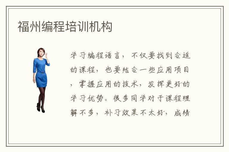 学习编程语言,不仅要找到合适的课程,也要结合一些应用项目,掌握应用的技术,发挥更好的学习优势。很多同学对于课程理解不多,补习效果不太好,成绩不太有保障,会变得非常苦恼。福州编程培训机构可以帮助大家关注更多重点知识,分享学习经验,化解实践的难题。编程培训机构哪些好,其实每个编程培训机构的教学质量和培训课程都不太一样,因此挑选时要有针对性,结合个人的需要去选择。如果找到一些很好的培训班,老师会有很高的要求标准,每个阶段都有测试,让大家快速找到重点,避免学习陷入困境而导致问题越来越多。编程是什么,编程是实现人类与计算机交流的重要技术工具,通过一系列的编程代码,可以命令计算机执行某些功能,甚至代替人类完成工作。