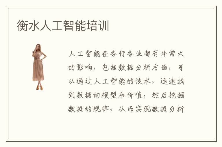 人工智能在各行各业都有非常大的影响,包括数据分析方面,可以通过人工智能的技术,迅速找到数据的模型和价值,然后挖掘数据的规律,从而实现数据分析的目标。在汽车行业,人工智能自动驾驶已经成为非常重要的技术,而且也是未来汽车行业的重要发展趋势。在通信行业,利用人工智能,实现互动互联等等方面的功能。衡水人工智能培训学校可以将课程分为几个阶段,包括基础训练阶段,应用提升阶段以及综合能力培养阶段等等。哪个人工智能辅导班值得选,如果学校的项目管理能力很强,培养的方向很清晰,同学学到很多知识,学习成果很有保障,这些辅导班值得考虑。人工智能专员的工作任务非常多,主要是负责人工智能的研究,人工智能的应用,人工智能技术的实现等等。
