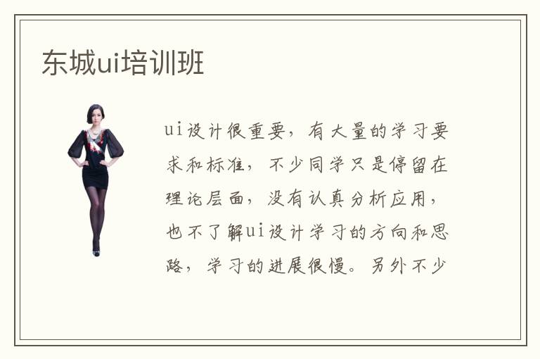 ui设计很重要,有大量的学习要求和标准,不少同学只是停留在理论层面,没有认真分析应用,也不了解ui设计学习的方向和思路,学习的进展很慢。另外不少同学很想要快点掌握专业的应用方法,但是学习的水平有限,视野不够开阔,难免会面临很多问题。为了得到较好的进步,同学们可报名东城ui培训班,老师会把一些深层次的教学任务介绍给大家,让大家短期内拥有提升空间。ui培训班课程难不难,ui培训课程的内容并不难,因为老师已经将各种课程筛选出来,通过清晰的方式向大家介绍,过程也有很严谨的思路,并不会让大家感觉到非常困难。ui培训班就业率高吗,辅导班的就业率很高,因为学校在培训的时候,也会把工作技能要求结合课程项目一起分析,使大家的工作优势更加显著。