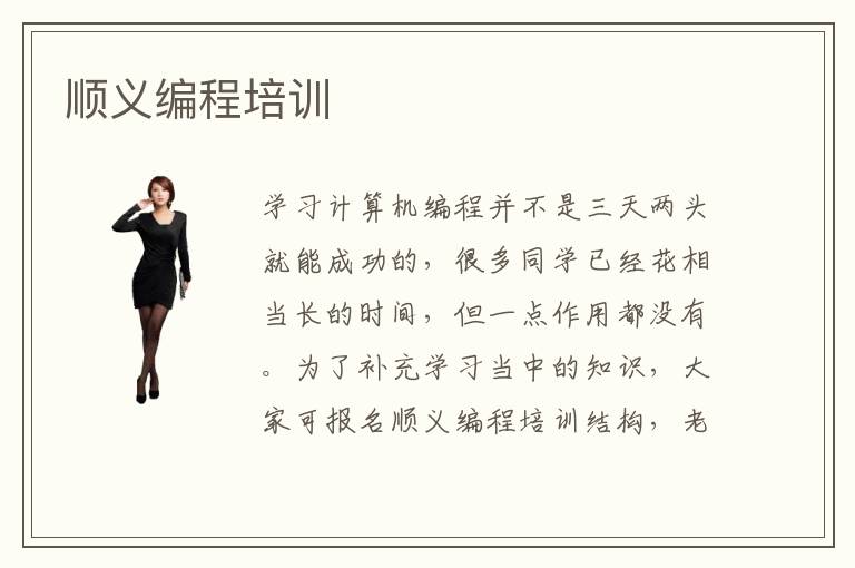 学习计算机编程并不是三天两头就能成功的,很多同学已经花相当长的时间,但一点作用都没有。为了补充学习当中的知识,大家可报名顺义编程培训结构,老师会分析同学的弱项以及需要弥补的领域。编程语言哪些好用,编程语言有很多类型,比较好用的有Python编程,Java编程,php编程。这些编程语言应用范围很广,也有重要的行业标准,应用的过程要有严谨的思路,要求同学有成熟的应用能力,才能熟练掌握复杂的应用项目。编程如何应用,计算机编程可以应用到很多各方面,比如网页开发和计算机应用、程序设计等。比如在网页开发的时候,需要找到一些高效率的编程语言,而Python编程就是非常重要的一种。另外在操作系统应用以及爬虫开发时,也可以使用Python编程。