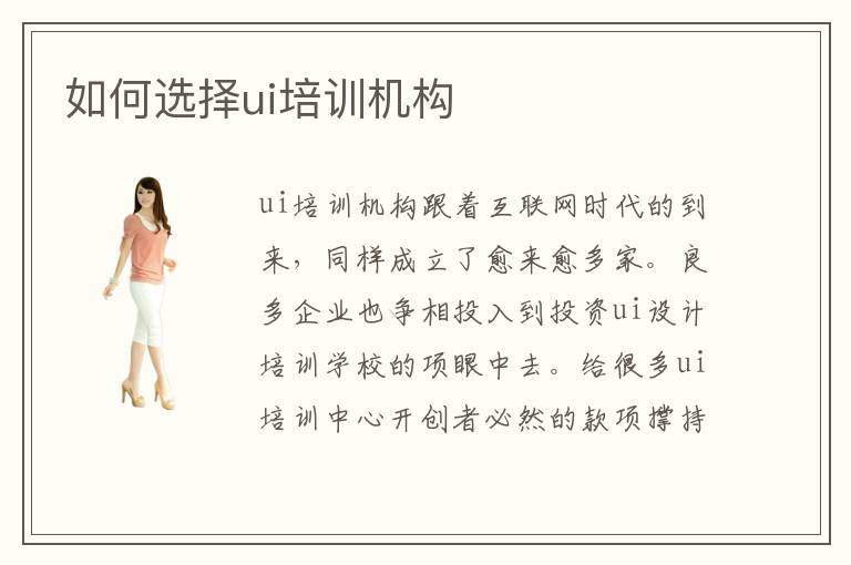 ui培训机构跟着互联网时代的到来,同样成立了愈来愈多家。良多企业也争相投入到投资ui设计培训学校的项眼中去。给很多ui培训中心开创者必然的款项撑持,充实足足投入与产出的补给闭系。ui设计培训机构中口碑连结在全国规模内的前十的培训机构有哪几家好的ui设计师培训在哪里如何精确地选择一家优异的培训机构停止ui设计课程的学习呢如何选择ui培训机构推荐电脑学校
