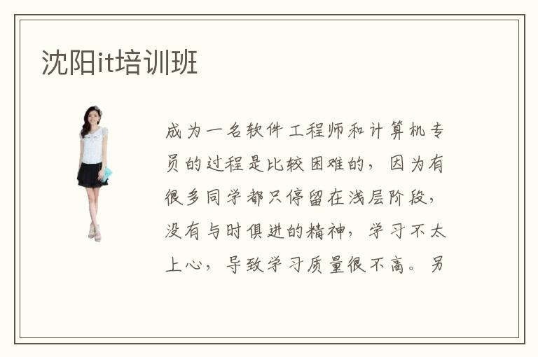 成为一名软件工程师和计算机专员的过程是比较困难的,因为有很多同学都只停留在浅层阶段,没有与时俱进的精神,学习不太上心,导致学习质量很不高。另外也有一些同学已经学习很多年,但是没有工作或学习的机会,进步的效果也不太好。沈阳it培训班可以为不同的同学安排技术指导课程,让大家熟练掌握it技术员的必备技能,只要同学完成it应用辅导课程,努力结合训练,提高应用的水平,发展空间是很不错的。另外辅导班的老师非常负责,每个阶段都会分析不同的案例,结合同学的掌握情况以及能力,安排不同难度的课程。若同学对某个内容比较陌生,都可以马上提出来,老师会进行专业的解答分析。这样有助于真正调动学生的积极性,而且培养过程主要以学生为中心,学习质量更高。