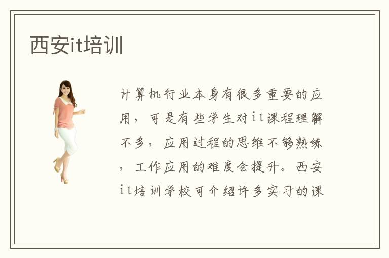 计算机行业本身有很多重要的应用,可是有些学生对it课程理解不多,应用过程的思维不够熟练,工作应用的难度会提升。西安it培训学校可介绍许多实习的课程和计算机应用课程、实践课程等,让大家的应用水平有更多突破。当然在应用的过程中,会结合许多it理论的训练一起,让大家的实践过程拥有很多理论作为支撑。it就业难不难,it行业的就业难度并不高,因为有多技术性的岗位,同学在学校阶段,不妨多关注重点内容,补充个人的不足,毕业之后,便可找到比较好的工作。it行业的岗位热门吗,it行业的岗位非常热门,很多同学在计算机行业毕业之后,可以得到许多工作的机会。当然前提是达到很高的技术要求和标准,在应聘的时候拥有技术优势,赢得互联网公司的青睐。