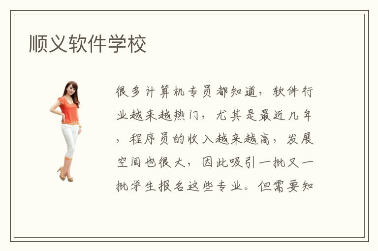 很多计算机专员都知道,软件行业越来越热门,尤其是最近几年,程序员的收入越来越高,发展空间也很大,因此吸引一批又一批学生报名这些专业。但需要知道的是,软件行业越热门,技术要求也越高,因此学生不能够掉以轻心,应该认真准备,了解前沿的软件技术,强化个人的水平,才能取得很多优势。顺义软件学校有大量的培训经验,可以培养出专业的技术人员,每年都会有技术方面的更新,使大家结合时代的需求,积累更多新的知识。软件学校的要求多吗,软件学校的要求比较高,比如在理论知识方面,要理解软件开发理论和基本流程。在应用方面要强化应用的水平,提升操作的能力。软件开发复杂吗,软件开发过程比较复杂,涉及很多应用技术,尤其是软件架构,软件安装,软件编程应用等等。