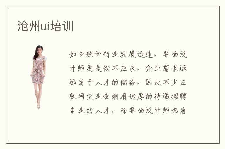 如今软件行业发展迅速,界面设计师更是供不应求,企业需求远远高于人才的储备,因此不少互联网企业会利用优厚的待遇招聘专业的人才。而界面设计师也看重这些行业的发展,想要加入到这些领域当中。但如果才刚刚起步,往往会变得非常艰难。因为技术要求越来越高,如果同学只停留在浅层的理论认知层面,很难拥有理想的发展成绩。沧州ui培训ui培训学校不仅会介绍界面设计的基础,也会分析重点的ui应用项目。只要学生有兴趣,都可以报名参与,由专业的ui培训老师全程指导,效率会非常高。ui培训费用可能在1万元到2万元,主要看大家的学习时间以及报名的机构类型。部分ui设计培训班比较知名,教学的口碑非常好,教学成果显著,配套资源完善,可能费用会更高。