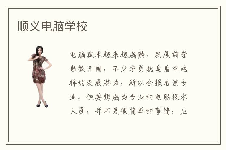 电脑技术越来越成熟,发展前景也很开阔,不少学员就是看中这样的发展潜力,所以会报名该专业。但要想成为专业的电脑技术人员,并不是很简单的事情,应该努力积累电脑理论知识和应用内容,与其他专业的应用学科结合在一起,从而发挥工作价值。顺义电脑学校会提供大量的重点课程,每个阶段都有目标和训练的计划,学生跟上老师的步伐,学习关键的技术,成绩会越变越好。电脑学校的优点在于教育的水平比较高,学生可以在专业老师的肩膀上学习更多知识,因此视野比较开阔。电脑学校的实践辅导特别重要,因为很多传统院校的学生都不太关注实践过程,只看到书本内容,虽然说考试取得相当满意的分数,甚至接近满分,但真正到了工作岗位,连基本的应用要求都无法达到。