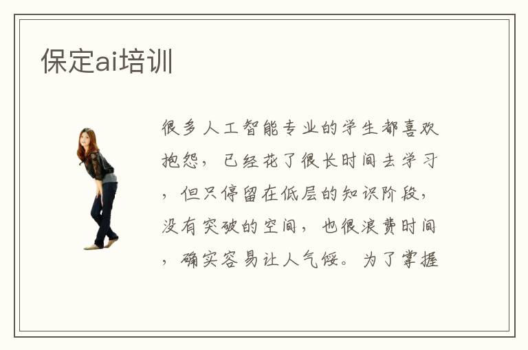 很多人工智能专业的学生都喜欢抱怨,已经花了很长时间去学习,但只停留在低层的知识阶段,没有突破的空间,也很浪费时间,确实容易让人气馁。为了掌握人工智能的知识,学生可以选择保定ai培训学校,由老师介绍一些高水平的ai课程,然后巩固好人工智能的基础,应用的时候也会方便很多。另外学校也非常重视ai行情,每一种课程都会结合ai行业的动态安排重点训练方向。要是学生对此感兴趣,都可以多投入时间关注这些基础。ai有哪些职位,人工智能的主要职位有研究人员、人工智能开发工程师,而且针对不同人工智能的应用有不一样的岗位。其中比较重要的是在商业服务行业,需要用到人工智能和大数据分析的技术,了解消费者的行为习惯,实现精准的营销。