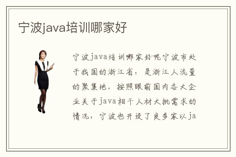 宁波java培训哪家好呢宁波市处于我国的浙江省,是浙江人流量的聚集地。按照眼前国内各大企业关于java相干人材大批需求的情况,宁波也开设了良多家以java专业为重点的互联网教育培训机构,对比这些培训机构,你感觉哪家好呢考查一家培训机构能否靠谱,首先要看它的口碑好欠好,背景怎么样,师资气力强不强,有没有实力,固然学生的就业成绩也是很主要的一方面。宁波java培训哪家好推荐电脑学校