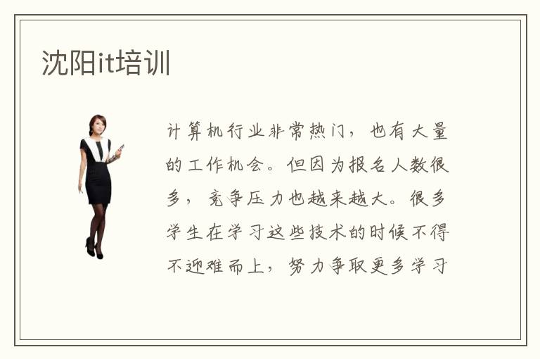 计算机行业非常热门,也有大量的工作机会。但因为报名人数很多,竞争压力也越来越大。很多学生在学习这些技术的时候不得不迎难而上,努力争取更多学习资源,提升技术应用能力,从而取得更多工作机会。沈阳it培训学校会严格安排时间,帮助大家制定严谨的学习规划,每个阶段都有重点,协助学生掌握更多新颖的it专业技术。可能很多学生不太理解it行业的发展现状,也不太懂得未来发展方向和就业前景。但可以报名辅导机构,老师会分析就业的经验和发展动态,通过简单的形式详细介绍给大家。其实这段对行业的发展很好,而且可以预见的是未来的10年内,计算机依然是主要的发展领域,所以计算机专员要很努力去学习这些知识,争取跟上时代的变化,取得更多发展优势。