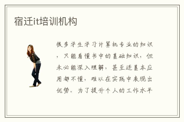 很多学生学习计算机专业的知识,只能看懂书中的基础知识,但未必能深入理解,甚至连基本应用都不懂,难以在实践中表现出优势。为了提升个人的工作水平,要从多个角度和层次理解计算机专业的知识。如果学习能力很有限,长时间看不到成果,可以报名宿迁it培训机构,一般情况下it培训机构的老师都有多年的教学经验,管理能力很强,培训经验也丰富,同学自然也可以收获更多。当然在挑选培训班时,还要看一下培训课程和时间安排,有些学生是上班族,基本没有业余时间,这时要考虑清楚上课时间是否与工作时间冲突。it行业有前途吗,it行业非常有前途,因为在众多科技领域当中,计算机专业领域是很重要的技术,也有很广阔的发展空间和表现机会,值得学生期待。
