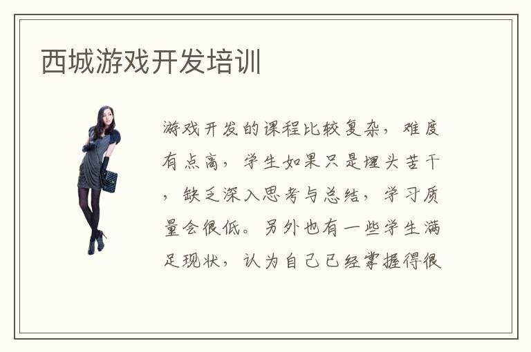 游戏开发的课程比较复杂,难度有点高,学生如果只是埋头苦干,缺乏深入思考与总结,学习质量会很低。另外也有一些学生满足现状,认为自己已经掌握得很好,但是没有与时俱进,有问题也不及时解决,容易导致工作优势越来越少。西城游戏开发培训学校有很清晰的指导计划,安排重点训练课程。学生若是有兴趣,可以报名补习班,从而取得好成绩。游戏开发面对面辅导有重要的作用,因为很多学生没有明显的进步,就是缺乏与老师的交流,就算有问题也没有快速得到解决,导致问题越来越多。但是得到游戏开发辅导班的指导后,学生与老师的讨论机会更多,可以学习更深层次的知识,也能迅速掌握游戏开发主要课程。另外辅导班会全程监督和检测,时刻关注学生的掌握进度,有利于调整学习的节奏。