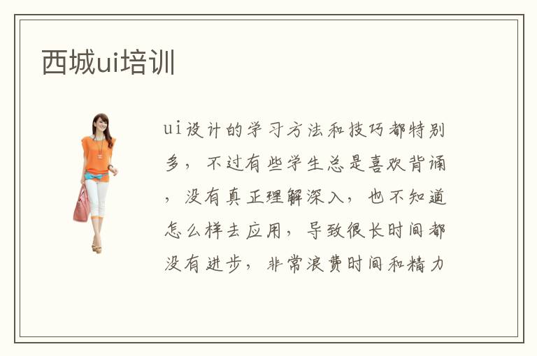 ui设计的学习方法和技巧都特别多,不过有些学生总是喜欢背诵,没有真正理解深入,也不知道怎么样去应用,导致很长时间都没有进步,非常浪费时间和精力,也容易影响个人的心情。其实大家有需要的话,可以报名西城ui培训ui培训学校,老师可以把重要的训练课程和培训方案介绍给大家,让大家迅速掌握ui设计师的技能要求,经过短期的辅导,就能够提高学员的专业水平,实现工作的目标。ui设计就业难不难,ui设计专业就业并不难,很多专业人员毕业后,都能够应聘界面设计师以及网络设计师等等方面的岗位。不过ui设计专业人才越来越多,所以大家要认真分析,努力学习先进的技术,关注行业动态,把握时代的发展趋势,在以后的应用中也能取得很好的价值,实现自己的学习想法。