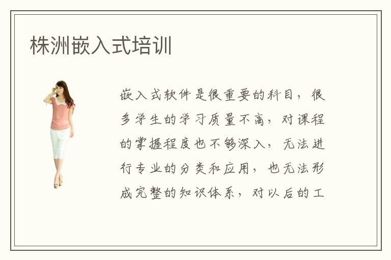 嵌入式软件是很重要的科目,很多学生的学习质量不高,对课程的掌握程度也不够深入,无法进行专业的分类和应用,也无法形成完整的知识体系,对以后的工作应用会有影响。株洲嵌入式培训学校会根据大家的现状,了解学生需要掌握的知识领域和就业方向,然后指定相关的课程,让大家在各种环境下也能掌握这些知识。嵌入式课程难不难,嵌入式软件的课程一般都不会很难,只不过有些同学没有掌握正确的方法,总是喜欢使劲背,因此学习效果很不好。而得到专业的嵌入式软件辅导班的帮助后,学生便可以吸收很多有用的知识,形成自己的学习框架,从而取得更好的进步。不过有了编程辅导班的协助,同学也要主动学习,认真对待各种领域的知识,不要漫不经心,也不要急于求成。