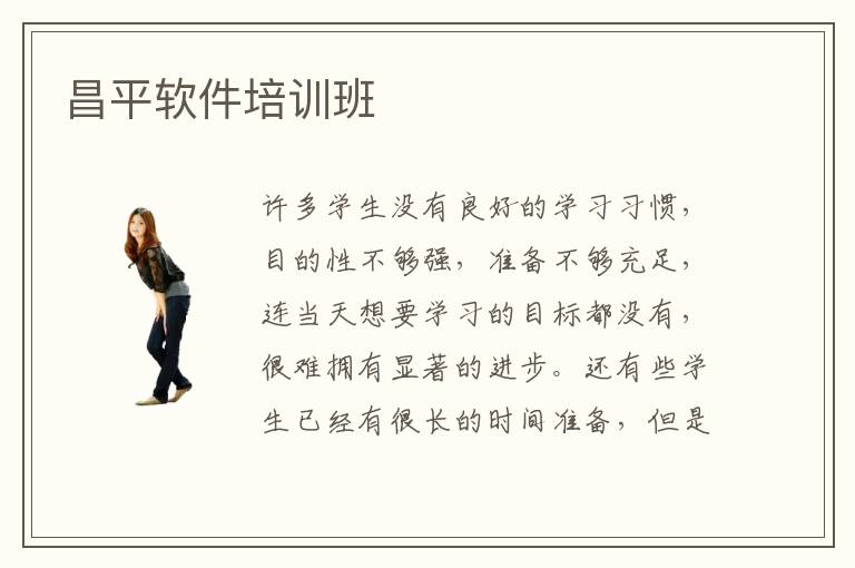 许多学生没有良好的学习习惯,目的性不够强,准备不够充足,连当天想要学习的目标都没有,很难拥有显著的进步。还有些学生已经有很长的时间准备,但是始终看不到效果,学习质量大打折扣,往往会非常迷茫。如果有这些学习方面的问题,学生可以咨询一下昌平软件培训班的老师,了解具体的原因所在,然后进行针对性的调整。软件培训班适合哪些学生,其实不管是基础薄弱的学生,还是水平比较高的学生,都可以报名软件辅导班,因为老师可以提供个性化课程,针对不同的学员基础,安排不一样的复习内容。软件专业要考证吗,软件专业也可以考证,比如软件专业考试,可以区分出专业人员的等级,尤其是在一些应聘场合当中,通过一些专业的证件,可以有效证明自己的实力。