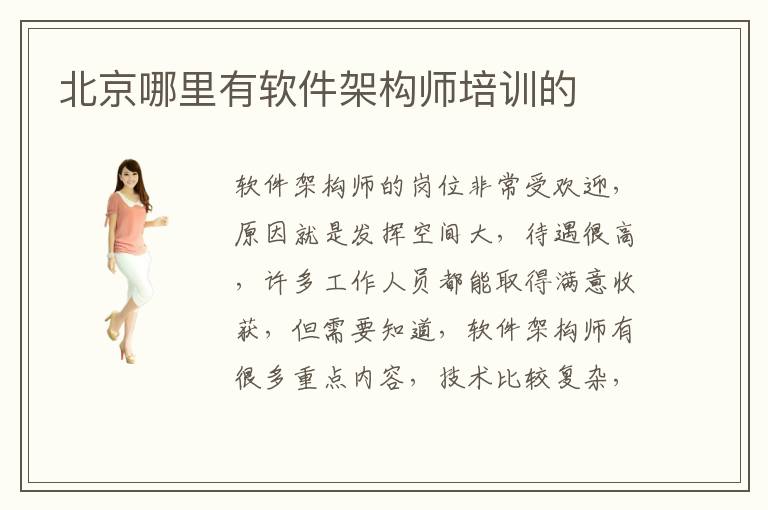 软件架构师的岗位非常受欢迎,原因就是发挥空间大,待遇很高,许多工作人员都能取得满意收获,但需要知道,软件架构师有很多重点内容,技术比较复杂,学生如果没有深入了解这些知识,也没有经过反复的练习,很难赢得理想优势。北京哪里有软件架构师培训的,很多地方都有软件架构师培训机构,而且这些培训机构的帮助非常大,比如可以提高同学的工作水平,开拓学生的视野,挖掘学生的兴趣。软件架构师培训班有用吗,软件架构师培训机构很有用,往往会针对同学的弱项,梳理知识框架,让大家对这些知识有更深刻的影响。软件架构师的任务主要有软件策划、软件基础架构、软件功能组织。因为软件越来越复杂,应用要求比较高,学生要认真去学习这些技术,优化自己的知识库。