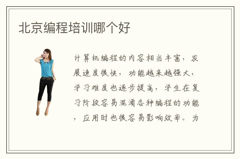 计算机编程的内容相当丰富,发展速度很快,功能越来越强大,学习难度也逐步提高,学生在复习阶段容易混淆各种编程的功能,应用时也很容易影响效率。为了改善个人的不足,学生可以考虑某些专业辅导班,由专业老师来亲自指点,也许有更高的效率。北京编程培训哪个好没有统一标准,因为每个编程辅导班的教学速度、培训的能力、配套设施、师资力量等等都不同。部分学校确实会认真为同学负责,聘请专业的老师,提供大量优越的专业设备,督促大家在学习理论的同时,也可以得到很多应用训练机会。编程培训班靠不靠谱,编程辅导班很靠谱,首先老师会详细介绍重点,内容梳理知识框架,分析课程的主次。编程有什么课程,主要有编程语言、数据分析、编程架构、应用范围等等。