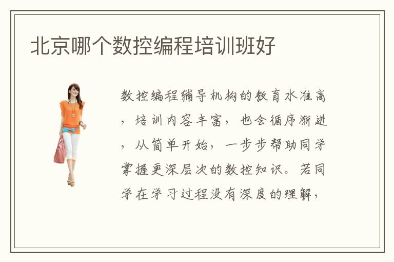 数控编程辅导机构的教育水准高,培训内容丰富,也会循序渐进,从简单开始,一步步帮助同学掌握更深层次的数控知识。若同学在学习过程没有深度的理解,缺乏应用的思维,都可以找到这些辅导机构的老师,由老师全程的教学,相信成绩会好一点点。北京哪个数控编程培训班好并没有统一答案,毕竟数据编程培训班特别多,教学特色不太一样,侧重点不同,学生的收获也有差别。数控编程培训班靠谱吗,多数数据编程辅导班都十分靠谱,教育水准高,会针对同学的工作应用以及学习的漏洞,进行反复的训练。数控编程要学什么课程,数控编程要学习的课程有编程语言的语法知识、数据分析结构、编程语言的应用范围、使用规则、应用标准等等。如果连基本的使用规则都不懂,很难把这些知识应用起来。
