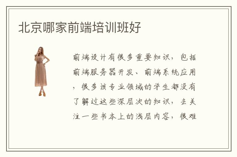 前端设计有很多重要知识,包括前端服务器开发、前端系统应用,很多该专业领域的学生都没有了解过这些深层次的知识,去关注一些书本上的浅层内容,很难掌握应用的技术,也难以在工作上有所发挥。不过大家不用担心,因为有很多弥补的方式,如报名专业前端培训机构。其实很难确定北京哪家前端培训班好,因为不同学校的专业能力、师资力量、前端培训班的成果等等都不同。不少前端培训机构的师资力量都十分雄厚,专业老师会设置对应的课程,针对同学的需要,安排个性化的教育计划。前端设计要学什么,前端设计的课程有基础的编程语法知识、计算机基本应用、前端页面重构、高级程序设计、网页性能优化等等,技术人员应当重视这些内容,反复练习,争取达到更高的标准。