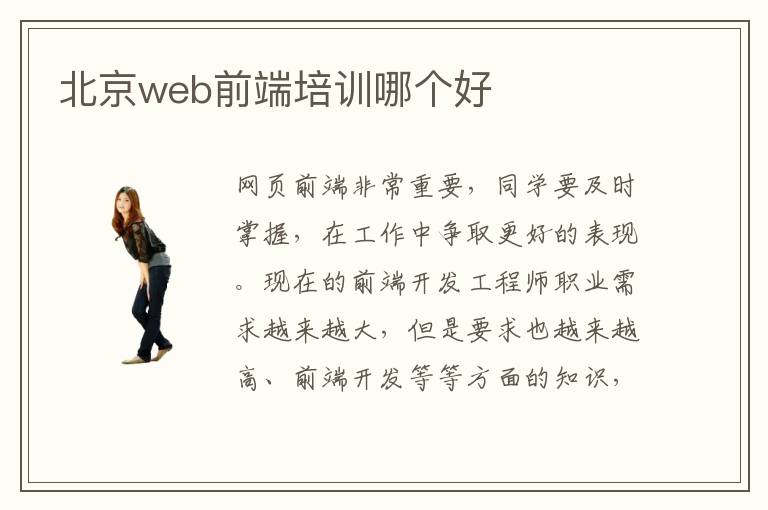 网页前端非常重要,同学要及时掌握,在工作中争取更好的表现。现在的前端开发工程师职业需求越来越大,但是要求也越来越高、前端开发等等方面的知识,也要负责产品需求分析、前端程序实现、前端架构等等内容。不少学生感觉这部分课程太复杂,已超过个人的自学能力范围,所以也会报名辅导机构,得到老师的指点,从而理解更加透彻。每个培训班都有不同的教学方式和培训思路,也有不一样的教学成果,很难确定北京web前端培训web前端培训哪个好。大家可以看看培训班的辅导能力和教学侧重点、web前端培训好处等等,然后做好自己的决定。web前端要学哪些内容,网页前端的课程比较丰富,包括前端开发技术、网络性能优化、服务器端基本知识、浏览器分析支持、代码可维护性等等。