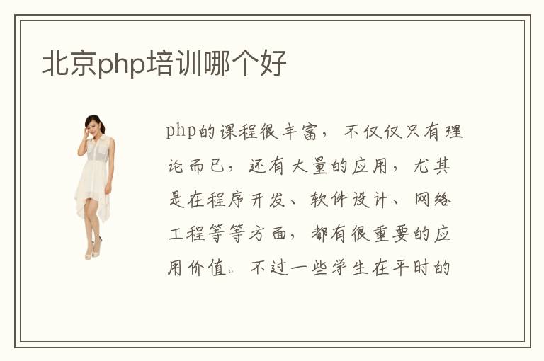 php的课程很丰富,不仅仅只有理论而已,还有大量的应用,尤其是在程序开发、软件设计、网络工程等等方面,都有很重要的应用价值。不过一些学生在平时的院校学习过程中,只学习过理论的内容,并没有经过严格的应用训练,工作优势凸显不出来。为了达到较好的专业学习成果,学生可以报名合适的php培训机构,由专业老师来指定课程,学习进展会更明显。其实不同培训班之间的教学模式、培训内容和教学方法都不同,所以很难确定北京php培训哪个好。php培训班多人吗,php培训班报名人数很多,原因是php培训班的教学速度快,培训质量高,大家非常满意。php有哪些优点,主要有点就是使用起来比较方便,应用功能非常强大,而且源代码开放,不需要花钱,修改起来特别方便。