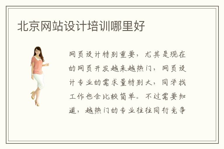 网页设计特别重要,尤其是现在的网页开发越来越热门,网页设计专业的需求量特别大,同学找工作也会比较简单。不过需要知道,越热门的专业往往同行竞争压力也越大,学生不仅要努力学习当下的知识,也要不断更新知识库,关注前沿的技术内容,了解行业的发展动态。如果感觉这些网页设计课程很难,可以看看北京网站设计培训哪里好,了解各种培训班的教学方式和培训重点。网站设计辅导老师可以培养同学的应用思维,使同学的视野更开阔,短期内看到进步后,也能增强学习动力,迅速达到学习目标。网站设计怎么学习,学习网页设计的时候,同时也可以从基础出发,了解基本的设计、软件设计流程、设计要求等等,然后进一步针对工作应用进行训练。比较常见的工作应用有平面设计、网页设计、移动界面设计。